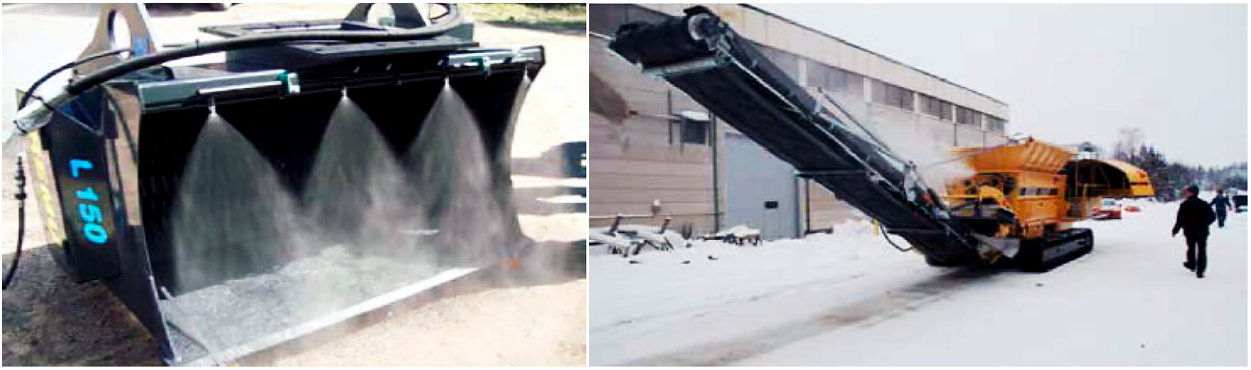 针对斗轮机部分,卡车装卸处,皮带下落处采用超细雾炮对于局部或者新增粉尘进行处理。